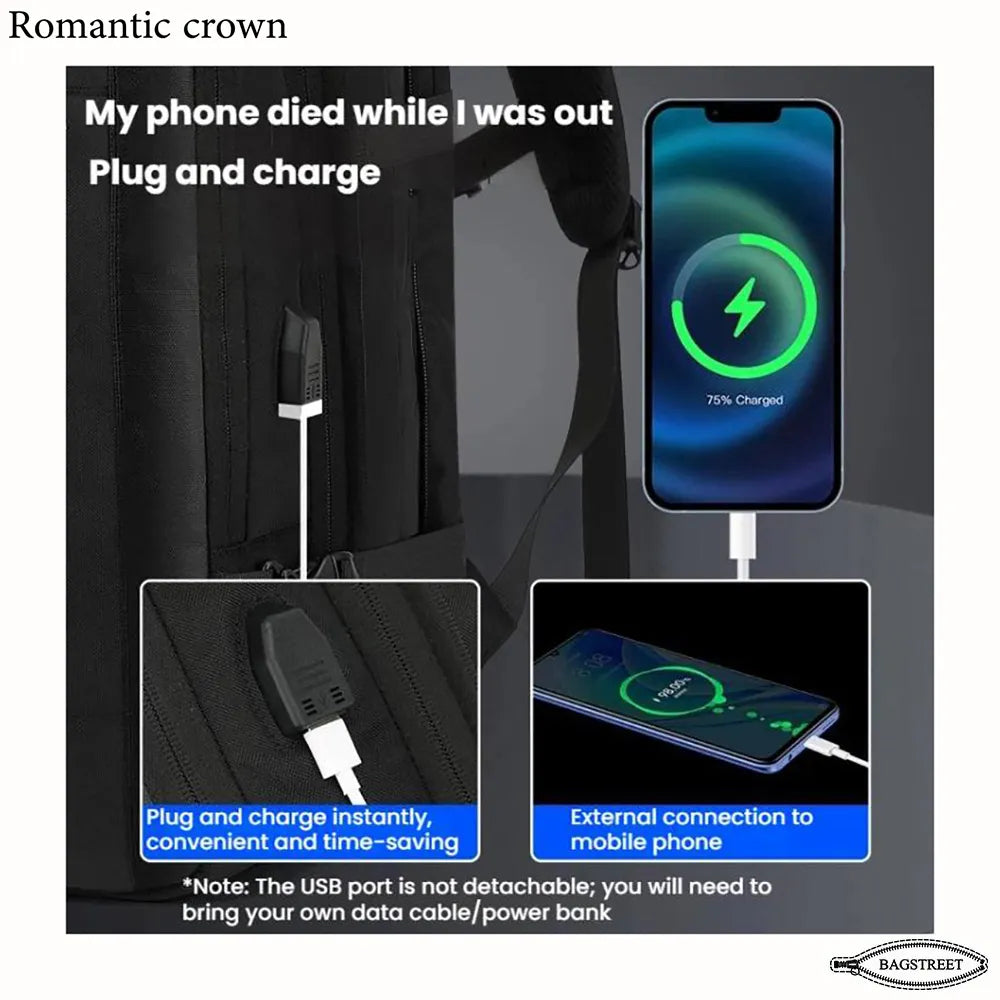 BUILT-IN USB CHARGING: External USB port allows you to charge your phone while walking (power bank not included). Perfect for travelers and students on the go.